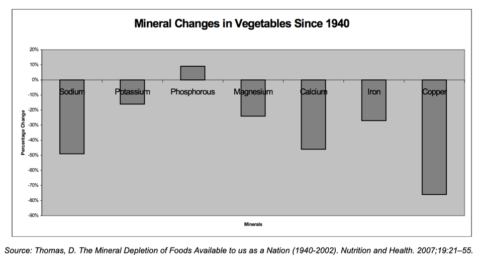A study done by David Thomas revealed the depletion of mineral content in our food since 1940.