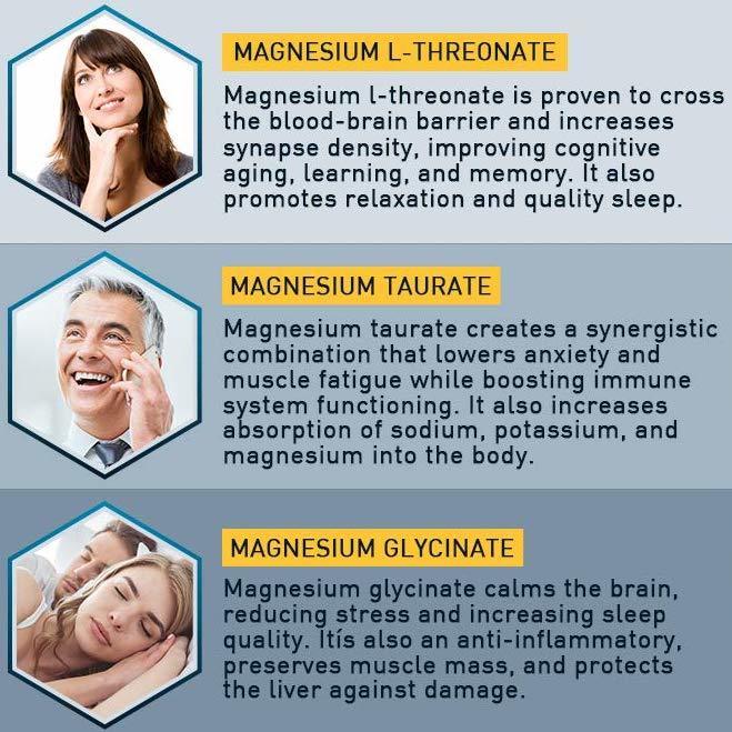 Combining magnesium and taurine helps relax the brain and body, can help you get to sleep sooner and be much more relaxed for the deep sleep you need.